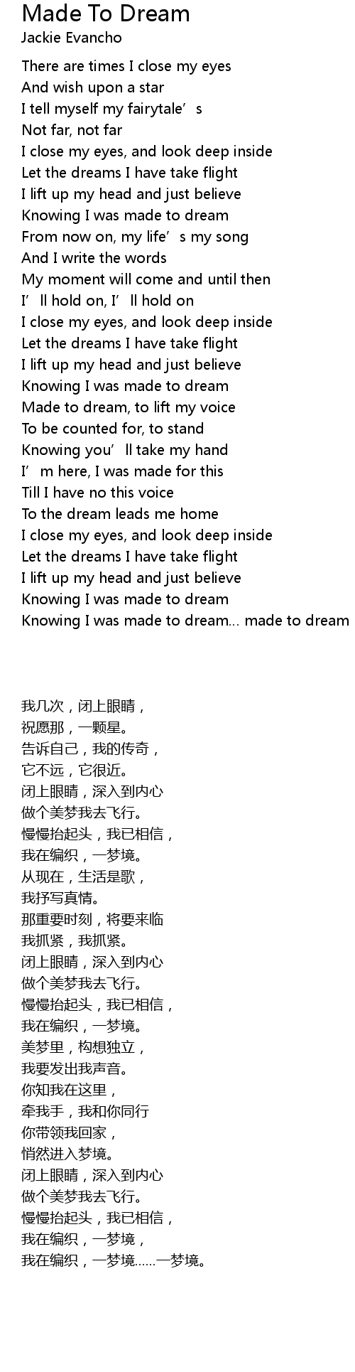 | [03:18.210] | Knowing I was made to dream made to dream |