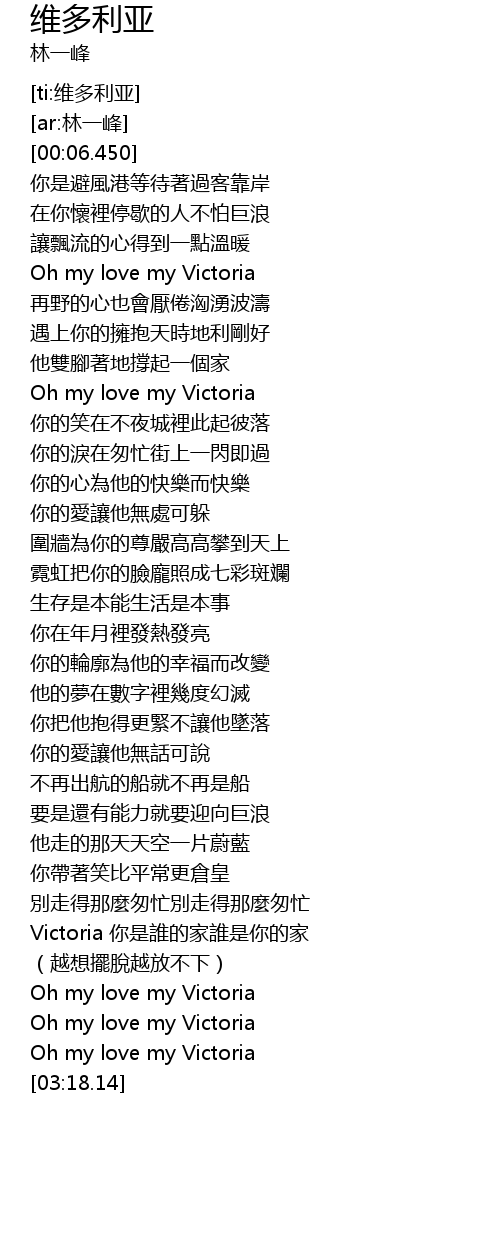 | [02:37.411] | Victoria 你是誰的家誰是你的家 |