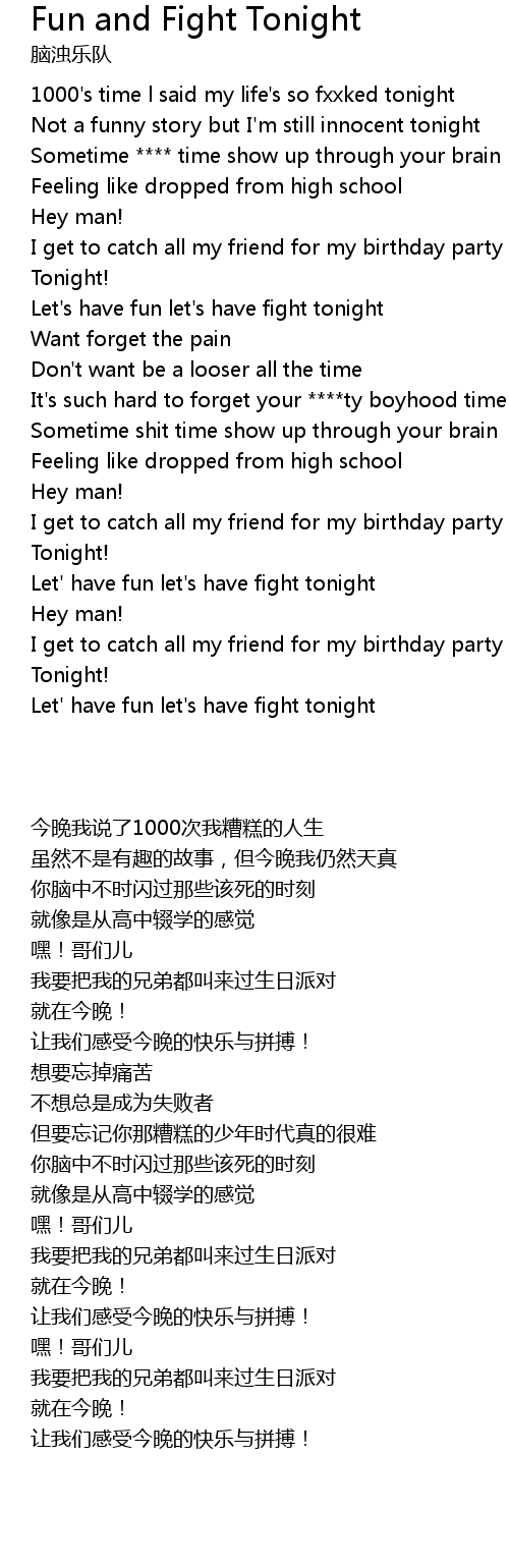 | [02:07.500] | Let' have fun let's have fight tonight |