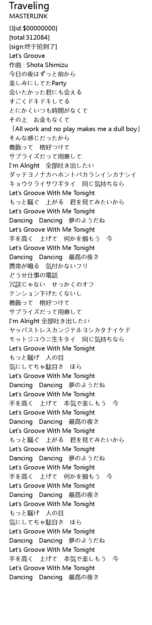 | [04:11.935] | Let' s Groove With Me Tonight |
