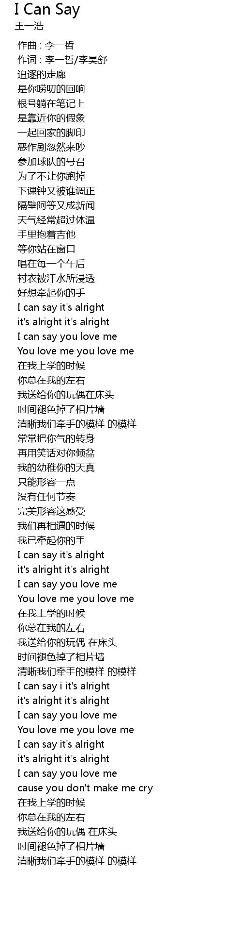 | [00:01.00] | 作词 : 李一哲/李昊舒 |