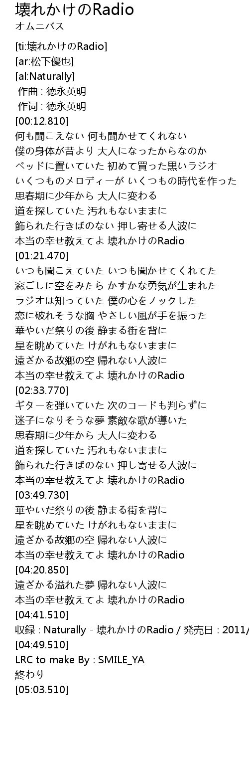 | [ti:壊れかけのRadio] | |