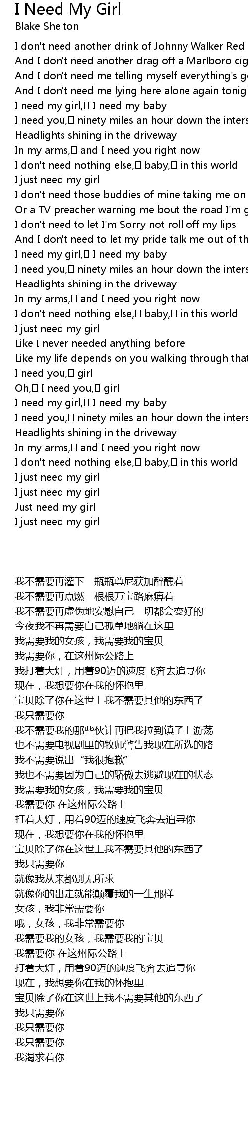 I need you, girl |
