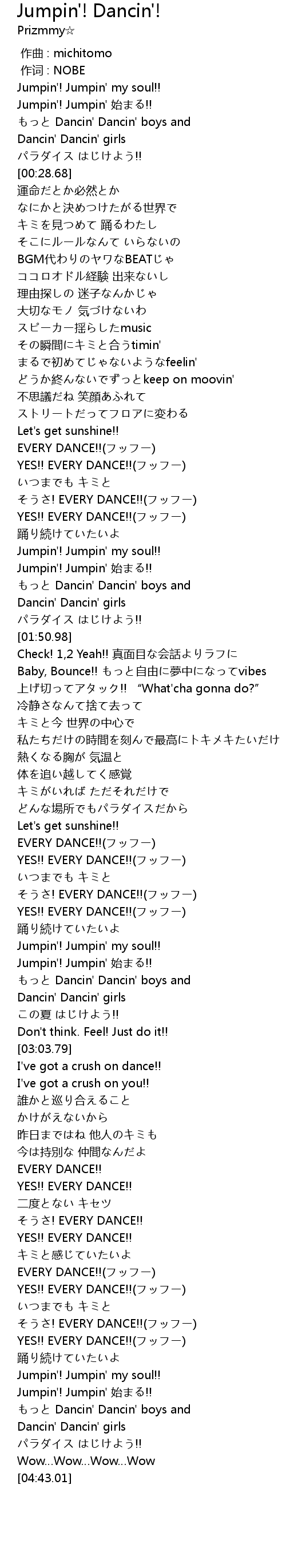 | [03:54.63] | ! EVERY DANCE!! |