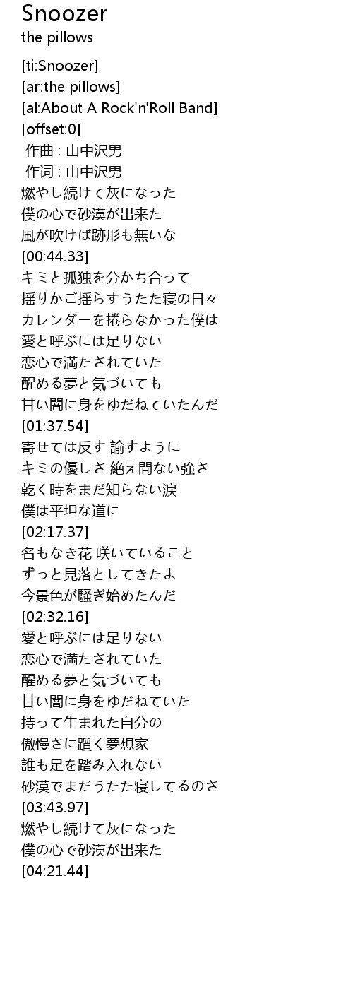 | [03:35.28] | 砂漠でまだうたた寝してるのさ |