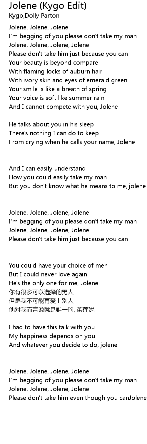 | Please don' t take him even though you canJolene, Jolene |