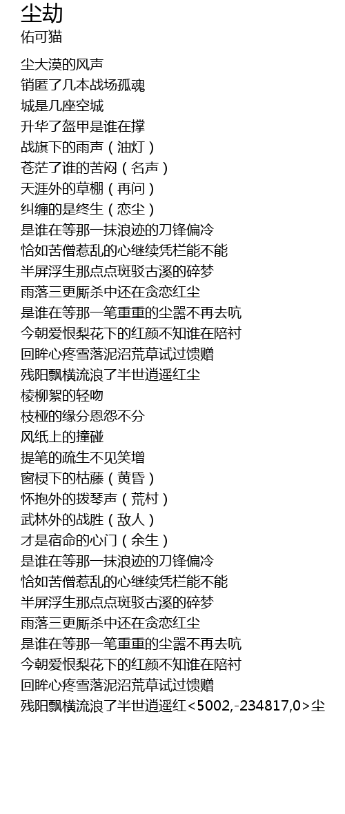 | [03:50.443] | 残阳飘横流浪了半世逍遥红<5002,-234817,0>尘 |