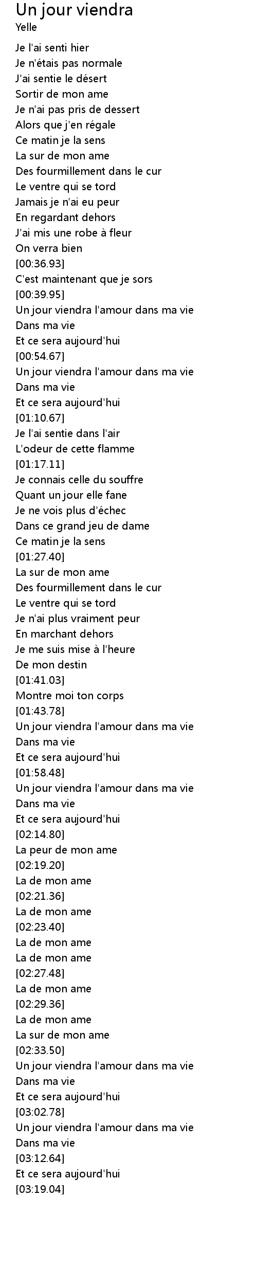 | [00:41.18] | Un jour viendra l'amour dans ma vie |