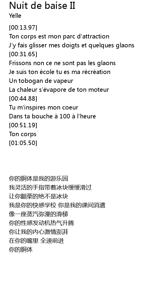 | [00:48.39] | Dans ta bouche à 100 à l'heure |