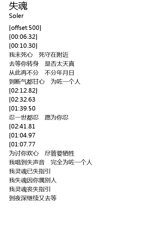 | [03:07.27][01:04.97] | 因我已经失魂 |