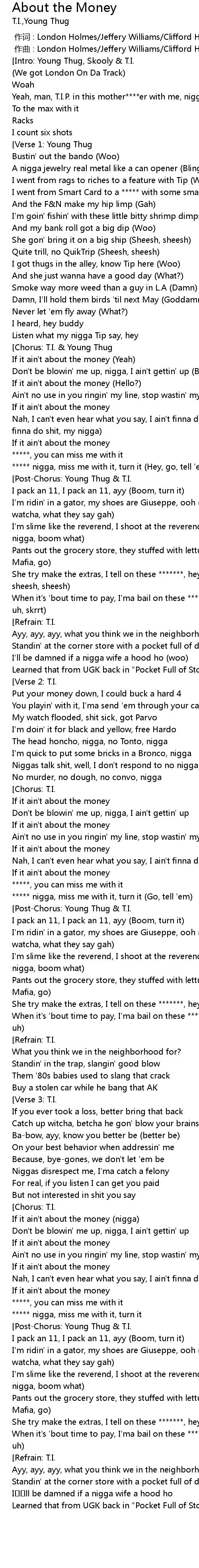 | [02:30.352][Post-Chorus: Young Thug & T.I.] | |