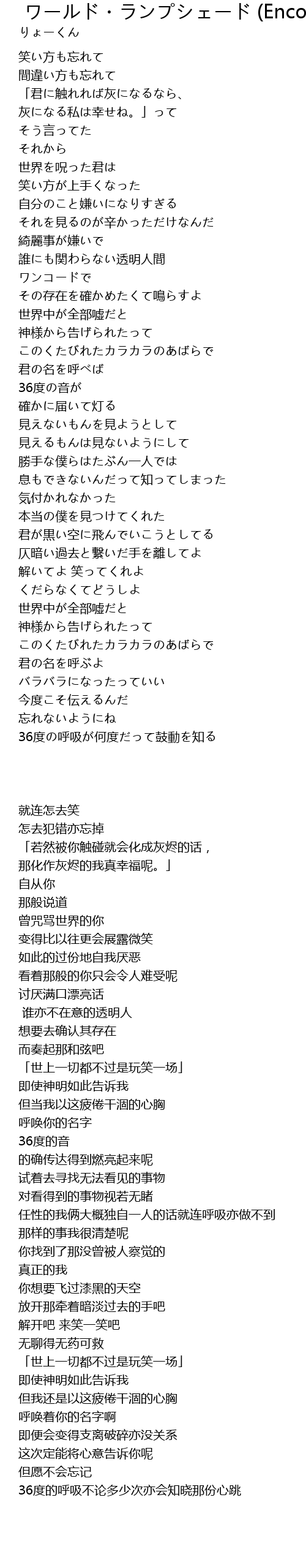| Song | ワールド・ランプシェード (Encore) |