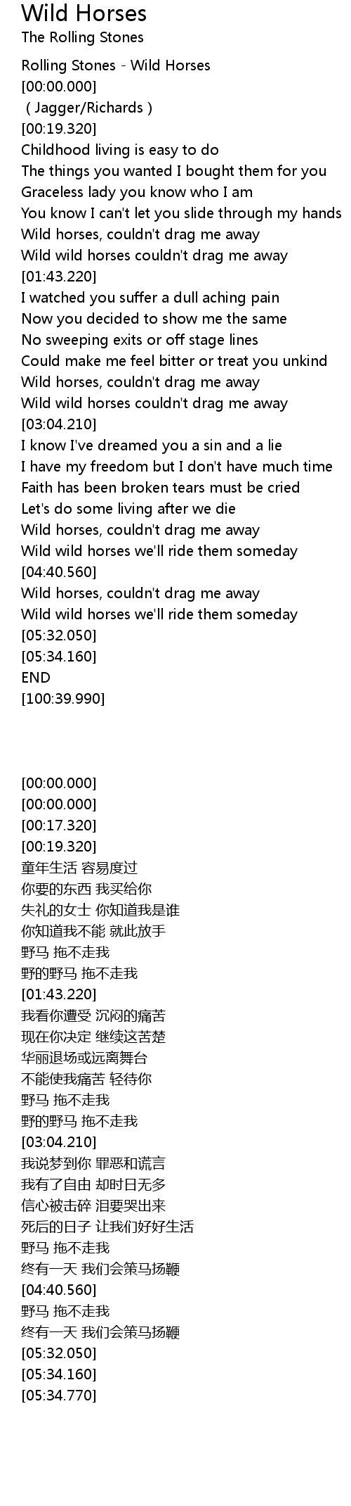 | [00:00.000] | Rolling Stones - Wild Horses |