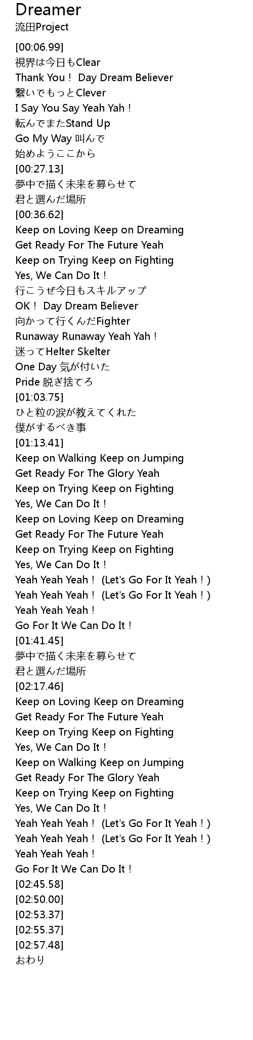 | [02:36.23] | Yeah Yeah Yeah! (Let's Go For It Yeah!) |