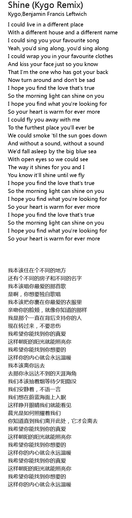 The way it shines for you and I |