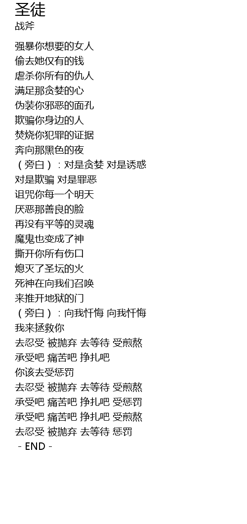 | [04:02.28] | 去忍受 被抛弃 去等待 惩罚 |