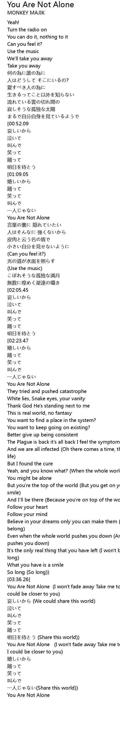 | [00:55.95][00:52.09] | You Are Not Alone |