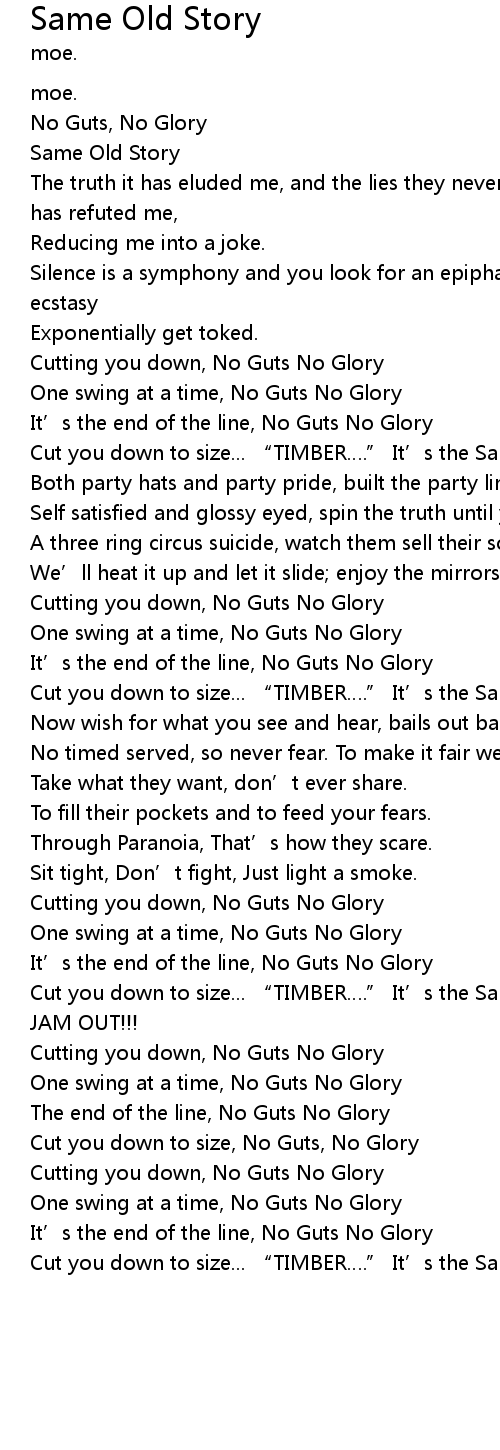 | Cut you down to size... " TIMBER." It' s the Same Old Story |