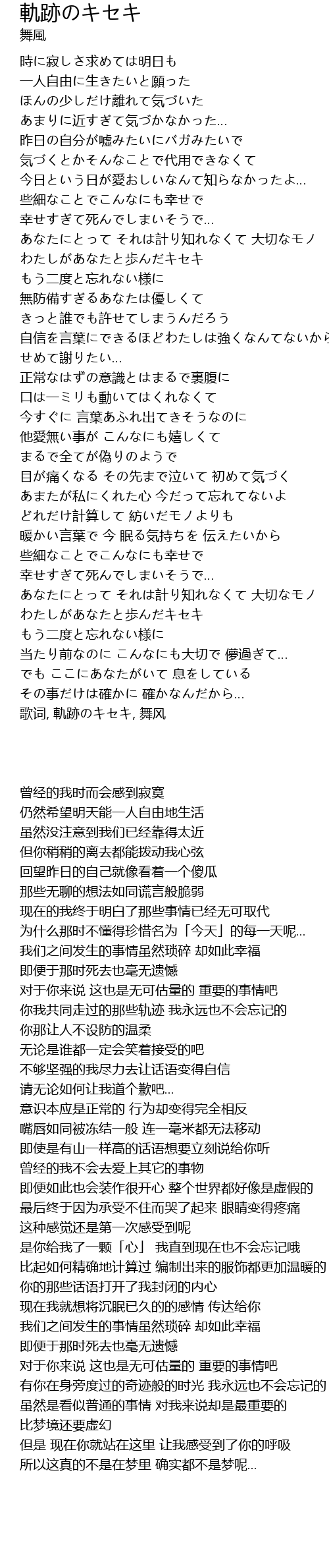 | [05:29.22] | 歌词, 軌跡のキセキ, 舞风 |