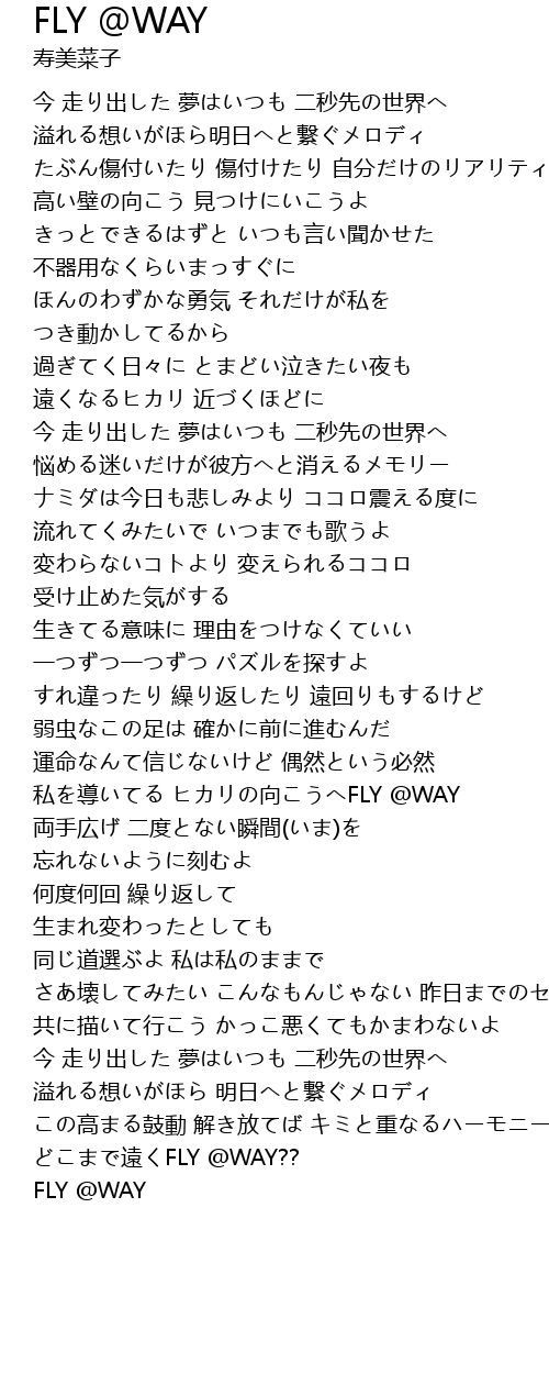 | 今 走り出した 夢はいつも 二秒先の世界へ | |