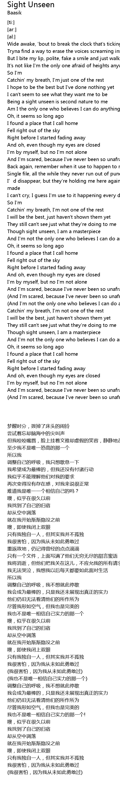 | [03:15.37] | Though sight unseen, I am a masterpiece |