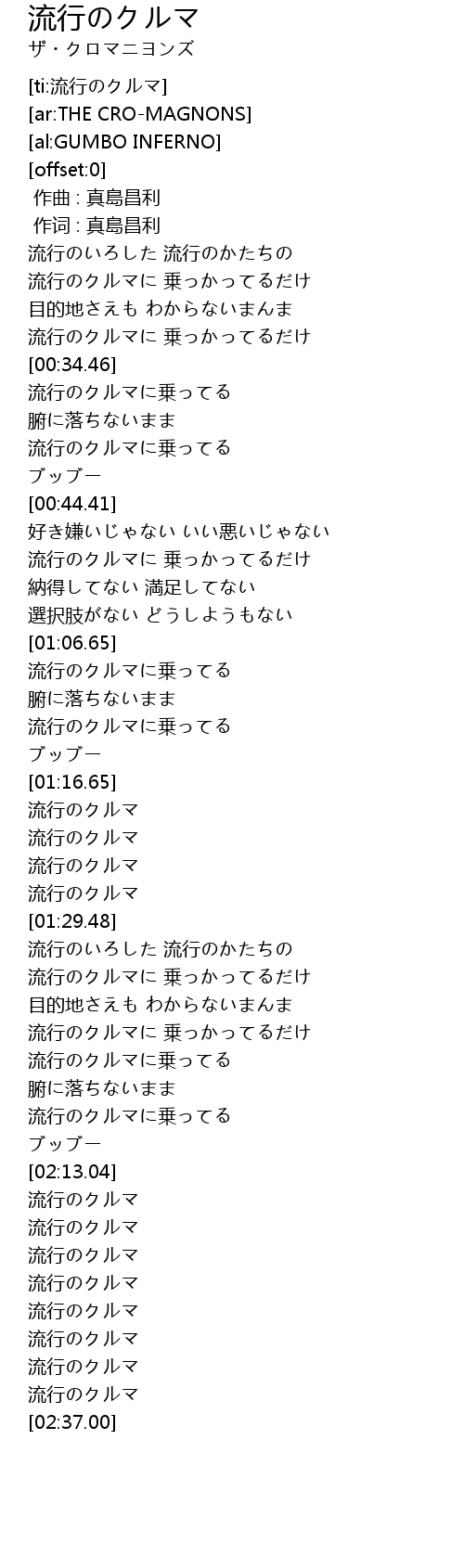 | [00:29.94] | 流行のクルマに 乗っかってるだけ |
