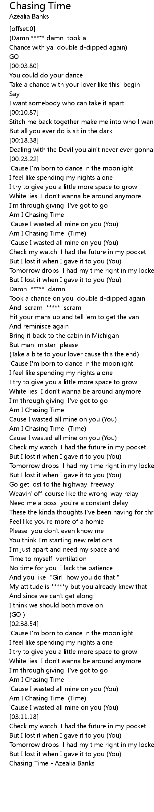 [03:28.07] Chasing Time - Azealia Banks