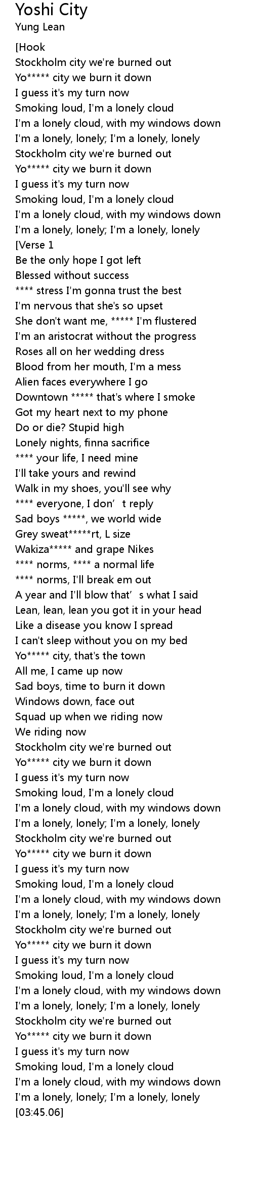 | [00:35.78] | Smoking loud, I'm a lonely cloud |