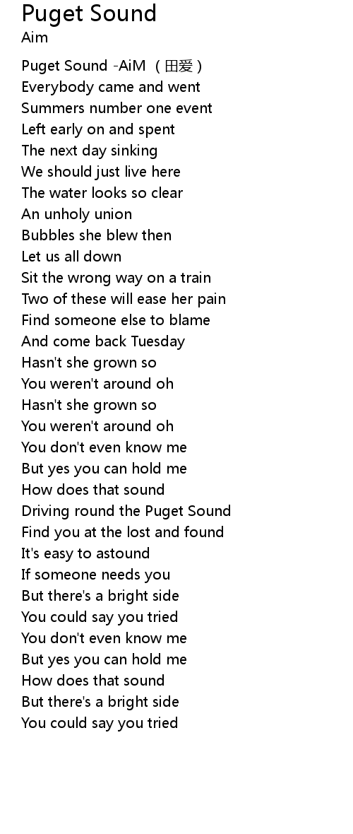| [00:00.00] | Puget Sound -AiM (田爱) |