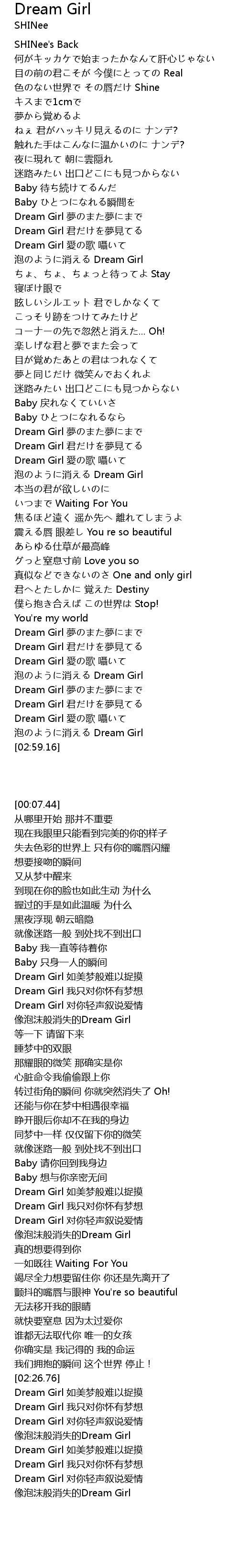 | [02:31.47] | Dream Girl 君だけを夢見てる |