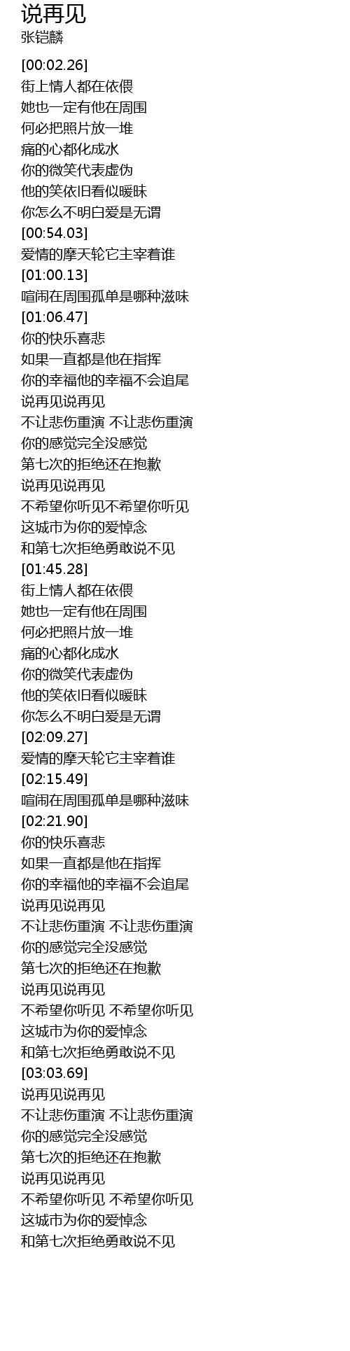 | [03:21.93] | shuo zai jian shuo zai jian |