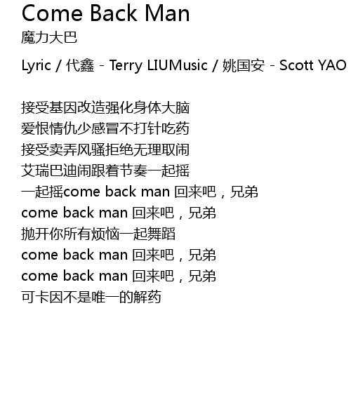 | come back man 回来吧,兄弟 | |