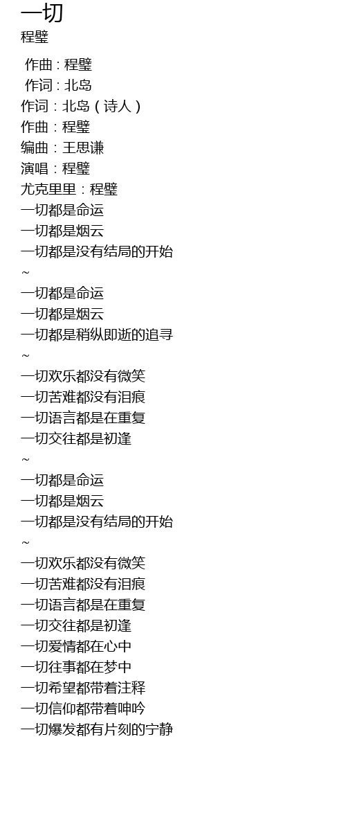| [02:41.590] | 一切苦难都没有泪痕 |