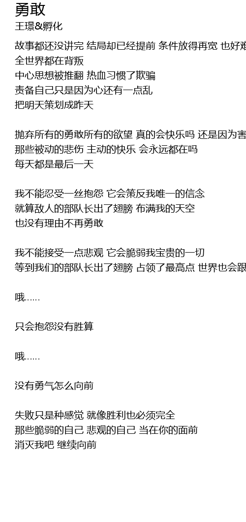 | 就算敌人的部队长出了翅膀 布满我的天空 也没有理由不再勇敢 | |