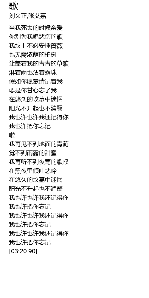 | [00:24.04] | 我坟上不必安插蔷薇 |