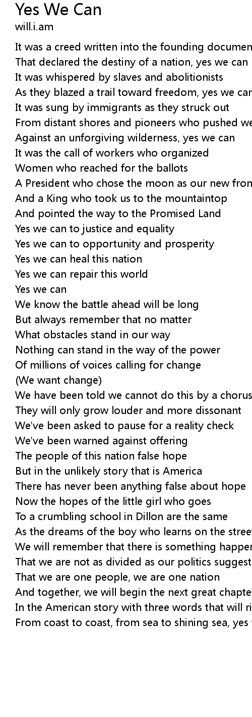 That declared the destiny of a nation, yes we can |