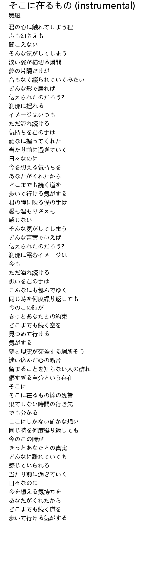 | [01:38.756] | 今を想える気持ちを |