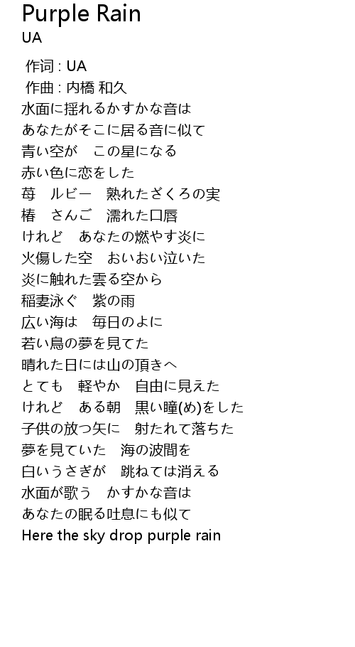 | [02:17.783] | 稲妻泳ぐ 紫の雨 |