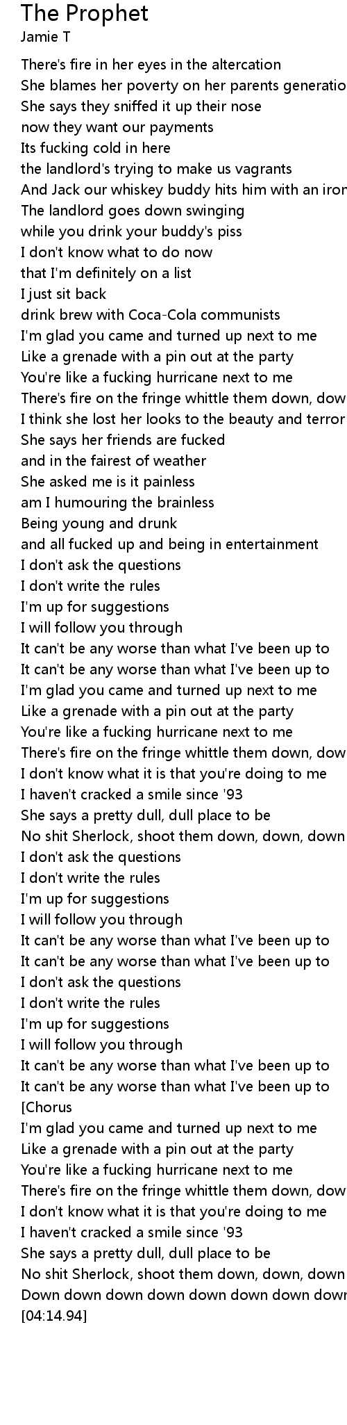 You're like a fucking hurricane next to me |