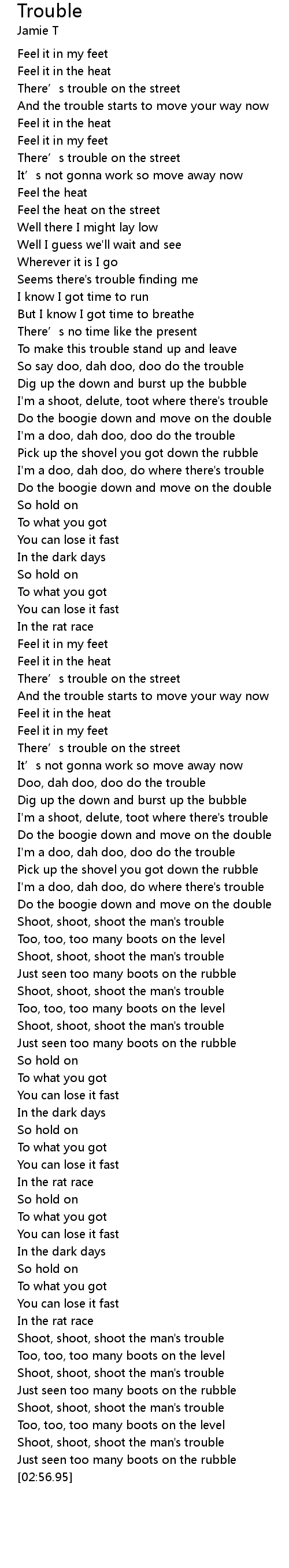 | [00:41.70] | So say doo, dah doo, doo do the trouble |