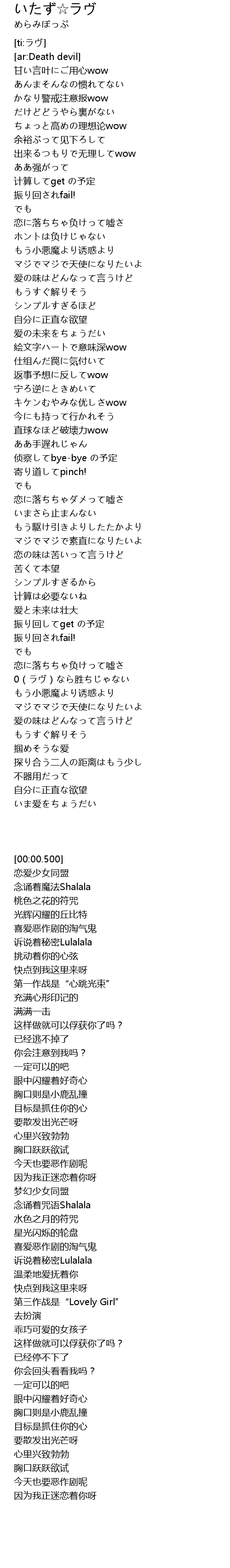 | [00:59.750] | もう小悪魔より诱惑より |
