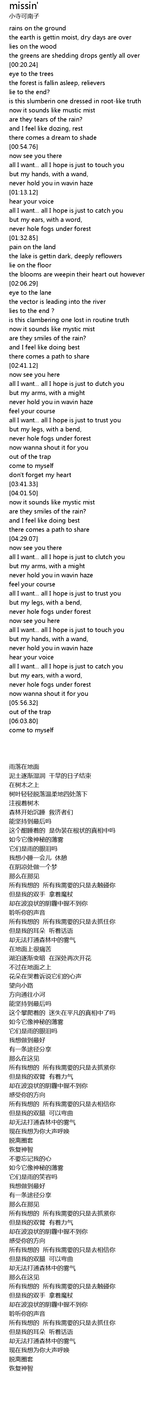 | [05:37.52] | never hole fogs under forest |