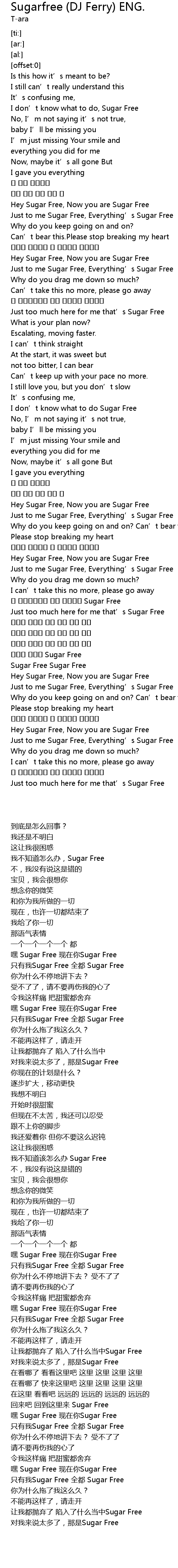 | [02:46.77] | I don' t know what to do Sugar Free |