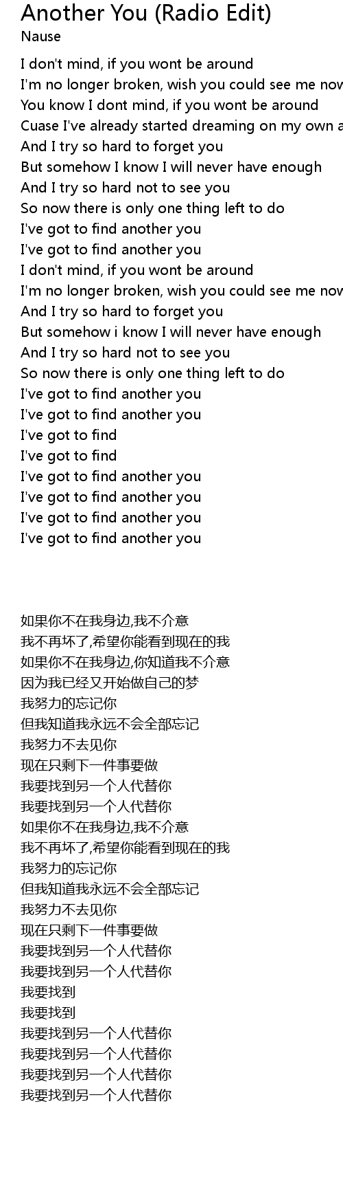 I've got to find another you |