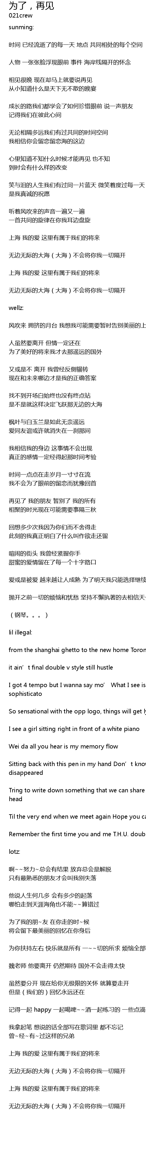 | Song | 为了,再见 |
