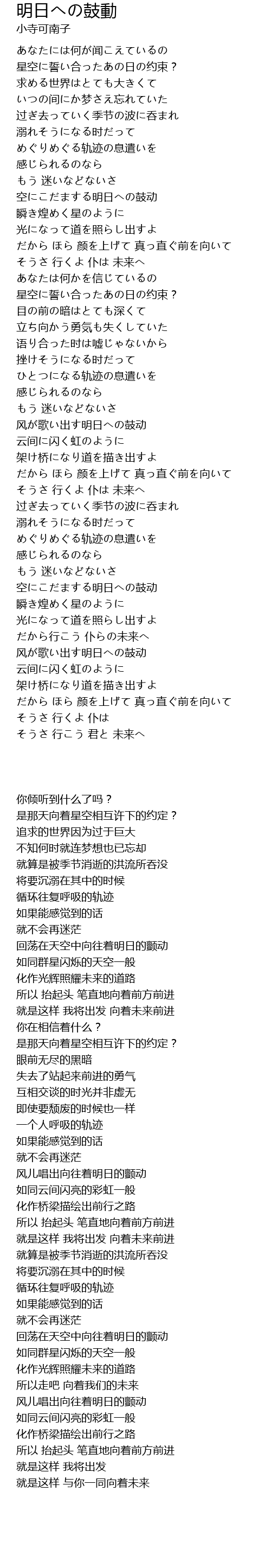 | [01:01.730] | 空にこだまする明日への鼓动 |