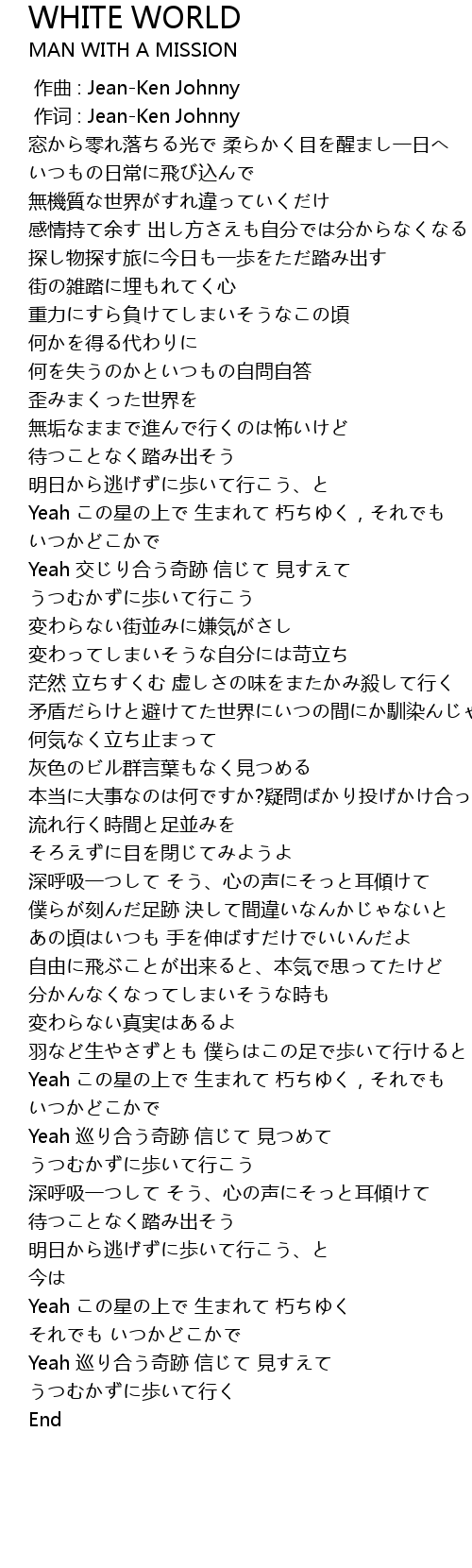 | [00:01.00] | 作词 : Jean-Ken Johnny |