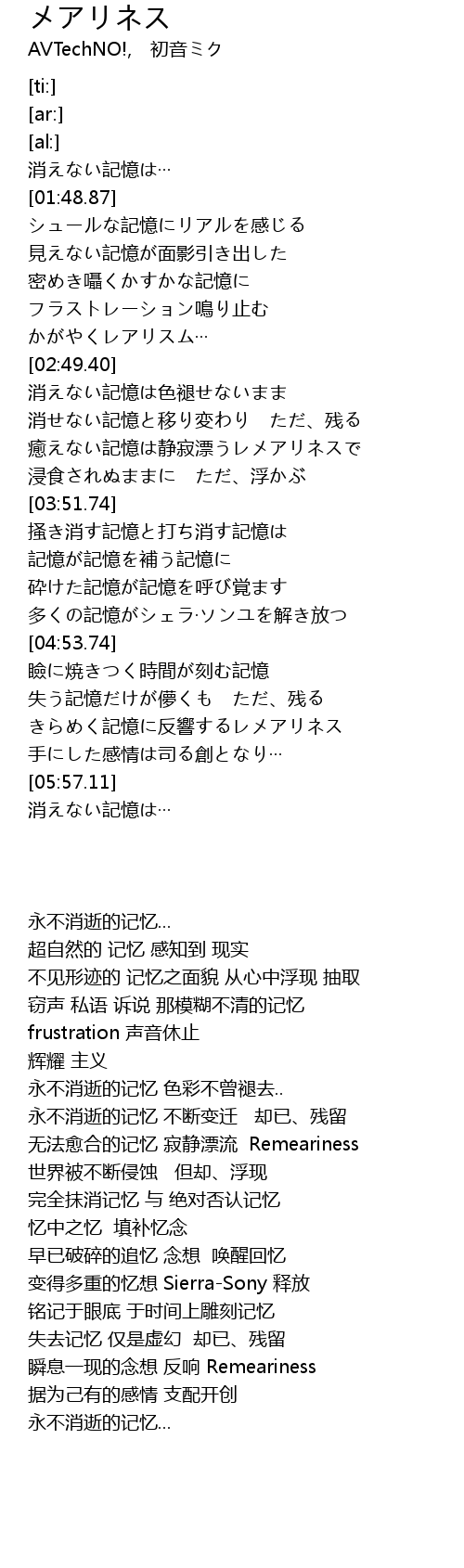 | [05:25.98] | きらめく記憶に反響するレメアリネス |