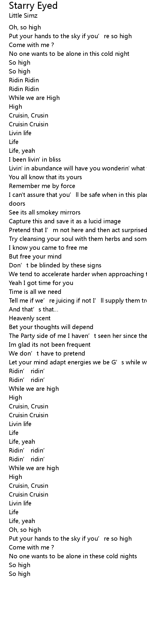 | [00:08.38] | Put your hands to the sky if you’re so high |