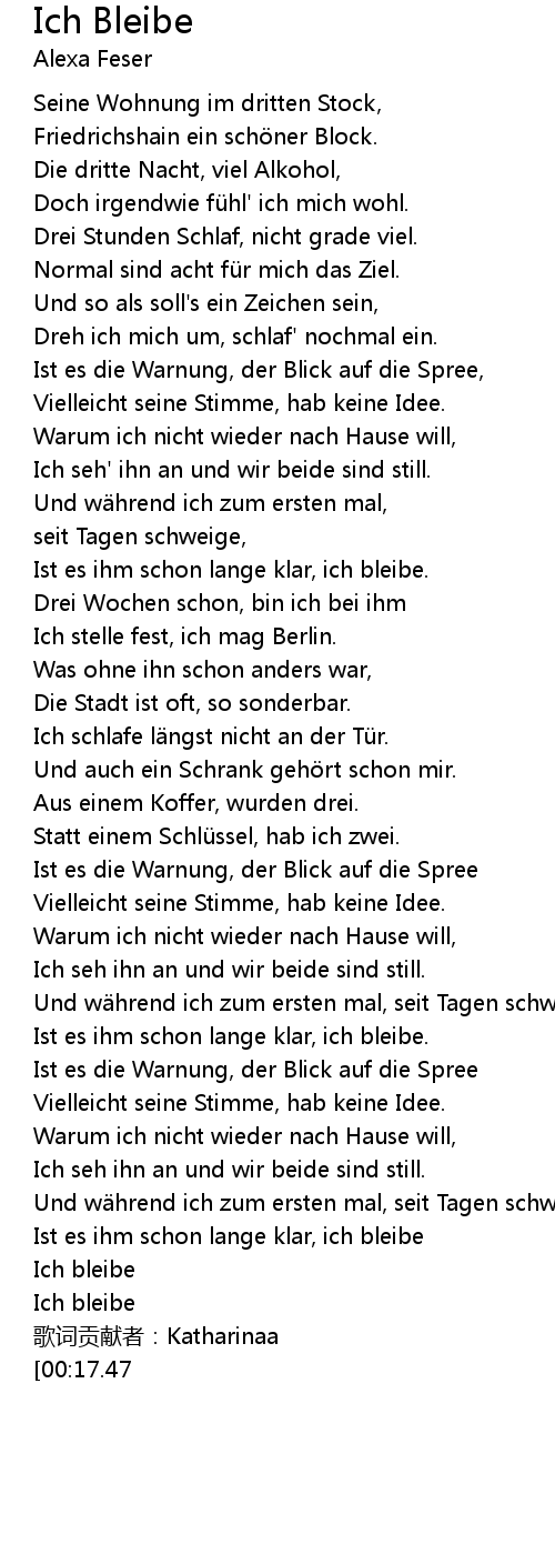 | [03:14.12] | Ist es ihm schon lange klar, ich bleibe |